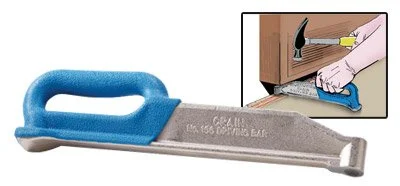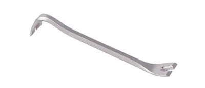 This steel pry bar is designed to get behind wood base and mouldings and pry them off with a minimum of damage. Both the rocker and flat ends have slim, wide-profile prying surfaces that are polished smooth for safer insertion. Both ends have sharp, bevelled nail slots with internal webbing shaped especially for taking up small headed nails, brads, and staples that are often used on mouldings. Made from forged and hardened steel and nickel plated. Net weight: 8 oz.