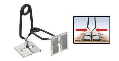 These seam squeezers are made with a powerful torsion spring and two grippers that are oriented inwardly to pull seams together. Sold in a set of two. They are helpful on glue-down carpet installations to pull and hold seams together. Pulling force can be controlled with the amount of hand pressure. The spring arms are vinyl-coated for comfort. Nap grips are replaceable: Part No. 1180-A. Net weight: 3 lb./set