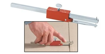 This versatile 8″ bar scriber works both as a wall scriber and a seam scriber. The tool has a rounded end guide for wall scribing, and a bottom guide for seam scribing that runs along the edge of the bottom piece of material as the top piece is being scribed. In addition, the red housing has a hole in its bottom for a second needle which allows the tool to scribe circles or feature strips. The 8″ bar allows approximately 6″ of length adjustment using the large steel thumbscrew. Needle height is adjustable for various material thicknesses using a screw in the front of the bar. Needles are replaceable (No. 129). Net weight: 8 oz.