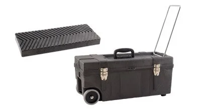 This fully featured yet lightweight 24″ toolbox is made from advanced “structural foam” materials. The thick walls are very durable but weigh a lot less. The box rolls level with the ground thanks to a long, top-mounted pull handle that can be conveniently pulled along while walking. The inner tray has features that assist in carpet seaming, including a series of angled recesses which allow steam to escape while also evenly pressuring the seam. Includes a folding, recessed top carrying handle, and integral side handles for lifting with both hands. Case has three latches and a central hasp for locking. Net weight: 16 lbs.