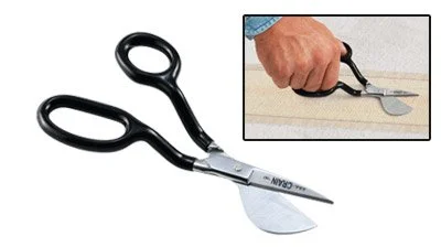 Our big loop nap shears have offset handles with oversize loops for users with large fingers. The offset handles are easily held parallel with the floor for trimming off the tops of carpet tufts. The flat duckbill rides on top of the carpet to position the top blade at the proper height. The right-side loop accommodates two fingers for ease of activation of the top blade. Handles are vinyl-coated for ease of grip. Net weight: 6 oz